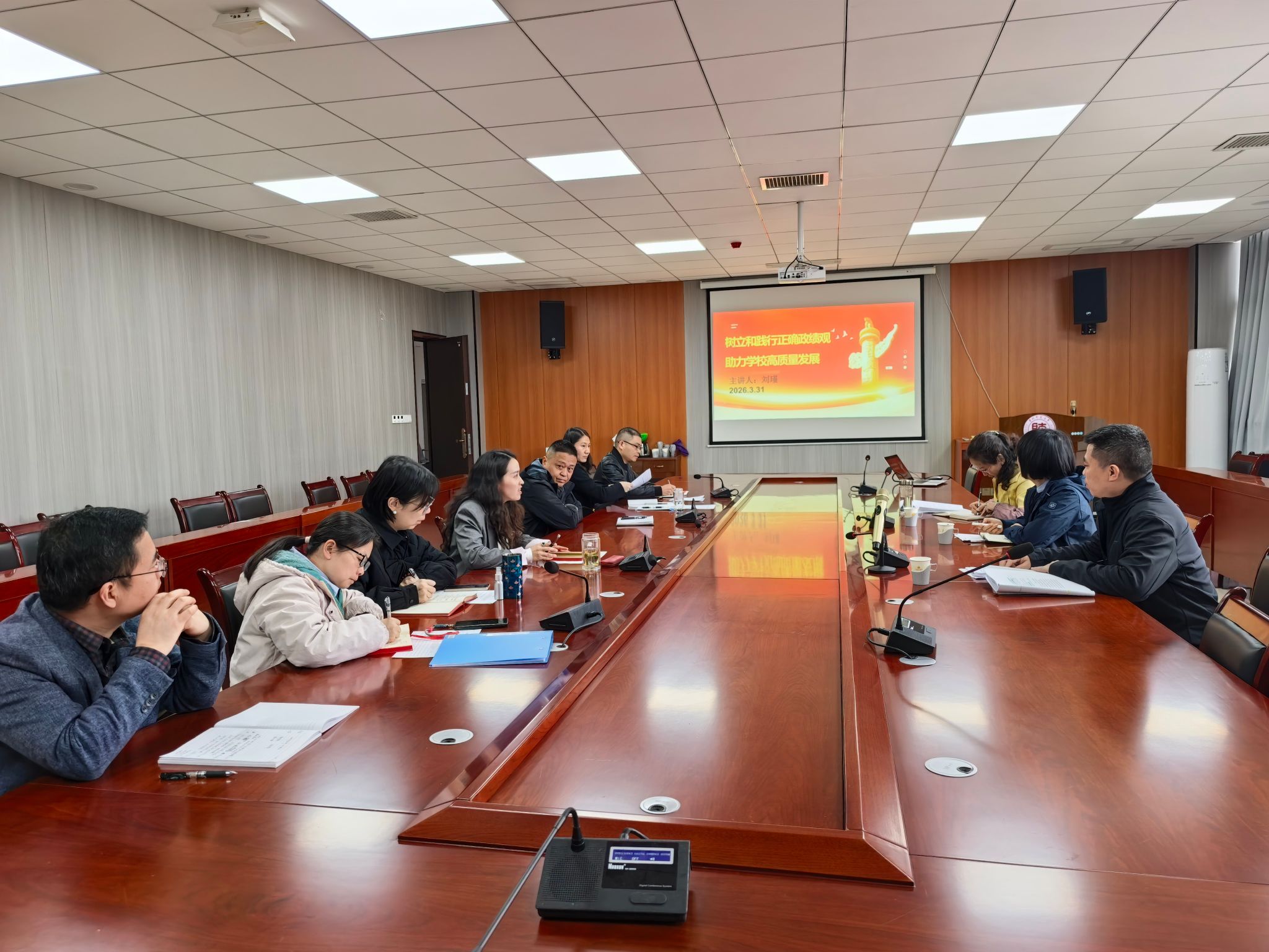 3月31日下午,副校长刘瑾以“树立和践行正确政绩观 助力学校高质量发展”为题,在研究生院会议室为研究生院党支部全体党员讲授专题党课。